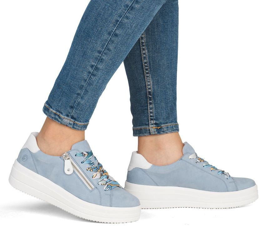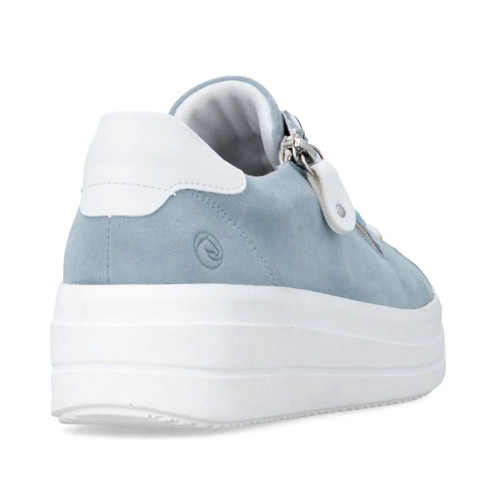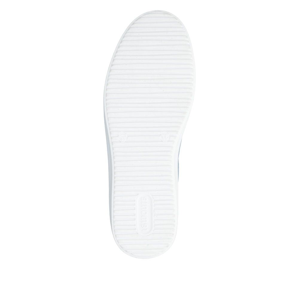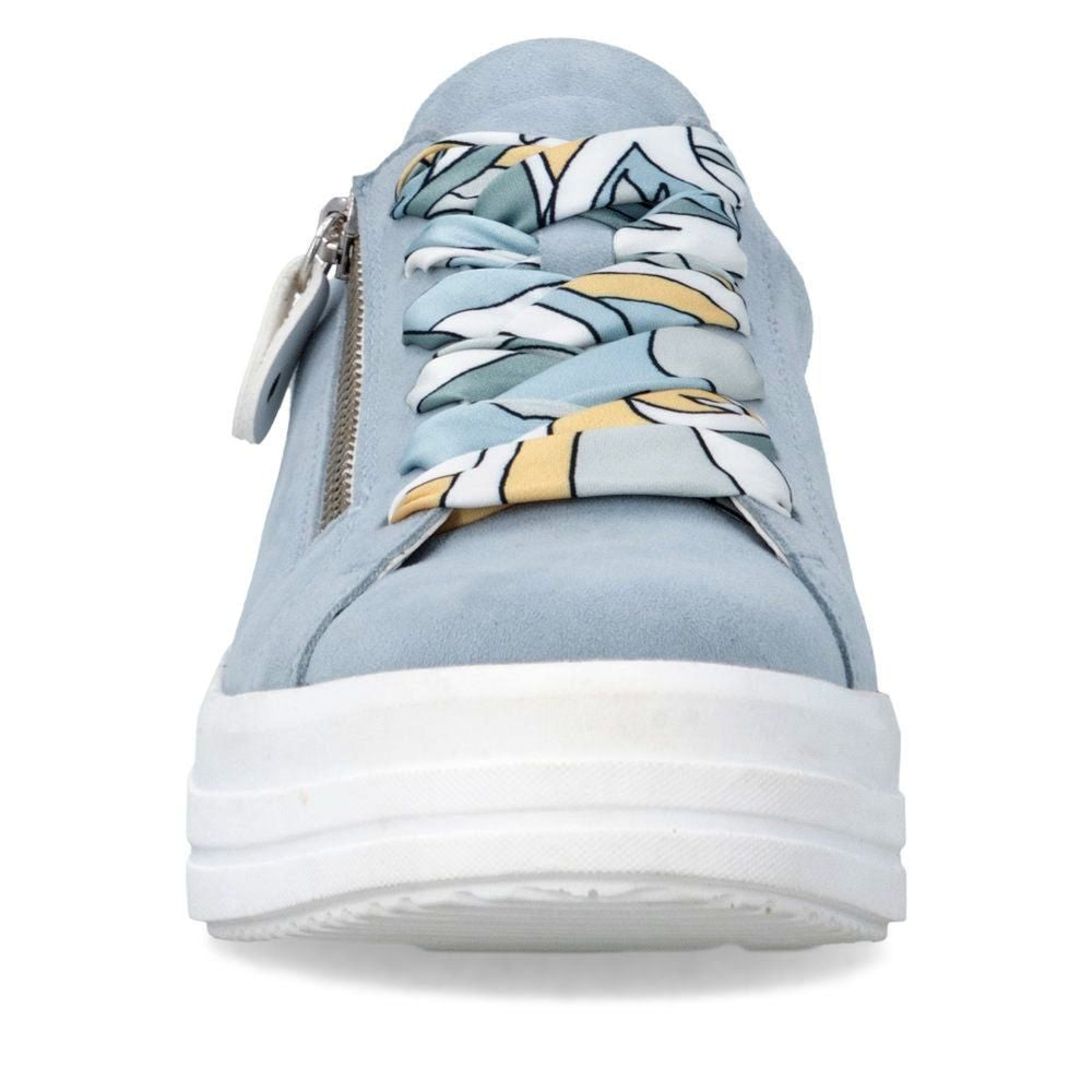 Ces baskets en cuir (daim) allient à la perfection classicisme intemporel et style moderne. L'empeigne bleu leur confère une allure fraîche et contemporaine, tandis que les détails brillants ajoutent une touche de luxe. Personnalisez le laçage selon vos envies : remplacez les lacets par un ruban décoratif pour une touche d'originalité. Le système de fermeture éclair et de laçage permet un ajustement précis et un enfilage facile, pour un confort optimal à chaque pas. La semelle intérieure amovible, souple et profilée, épouse la forme du pied pour un confort maximal. La semelle extérieure haute et stable, d'un blanc contrastant, complète le look moderne et assure une marche sûre et un bon maintien. Ces baskets sont un incontournable de votre garde-robe : parfaites pour le travail, le shopping, les balades en ville et les loisirs.